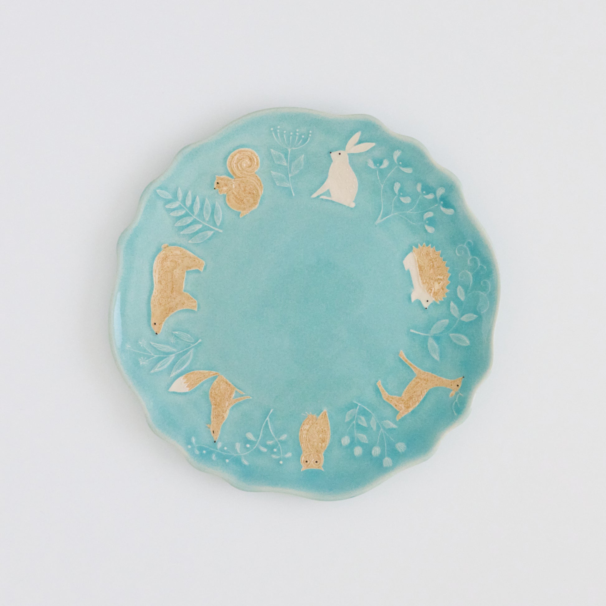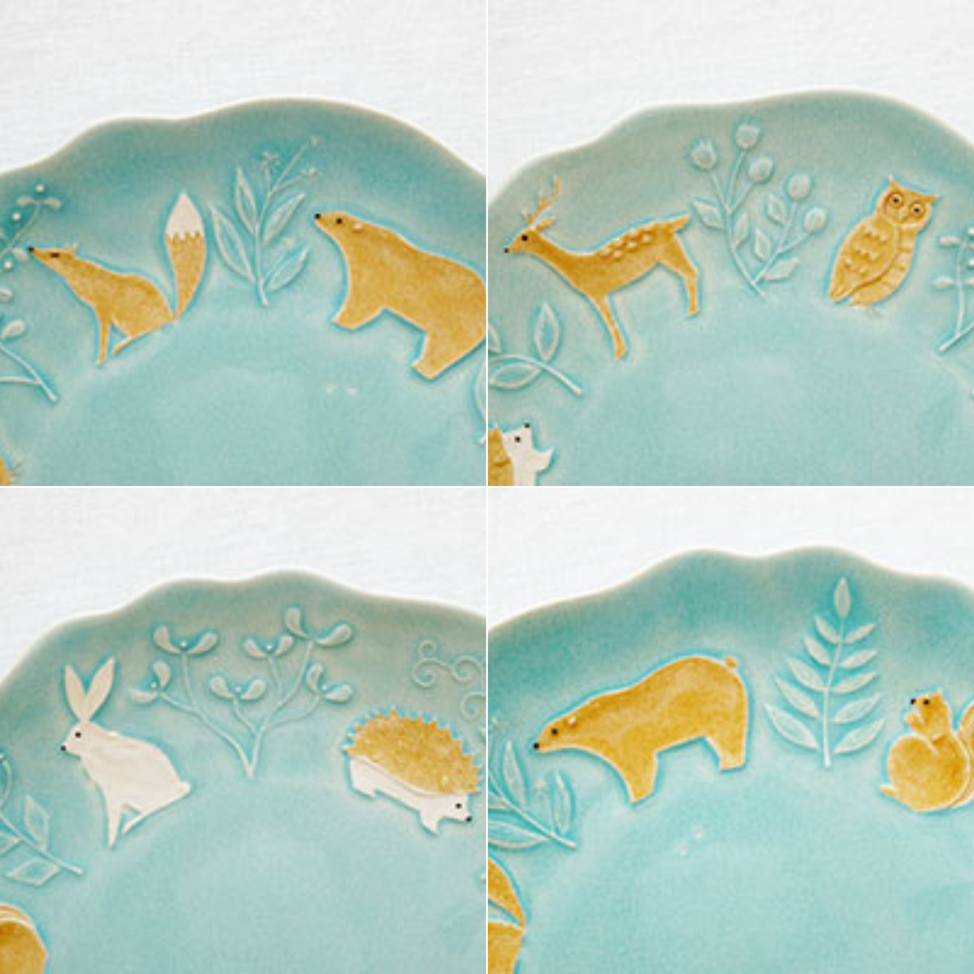 色はレイクグリーン。透明感のある青みがかったきれいな緑色は、料理を華やかに演出し、森の動物たちの物語をそっと引き立てます。