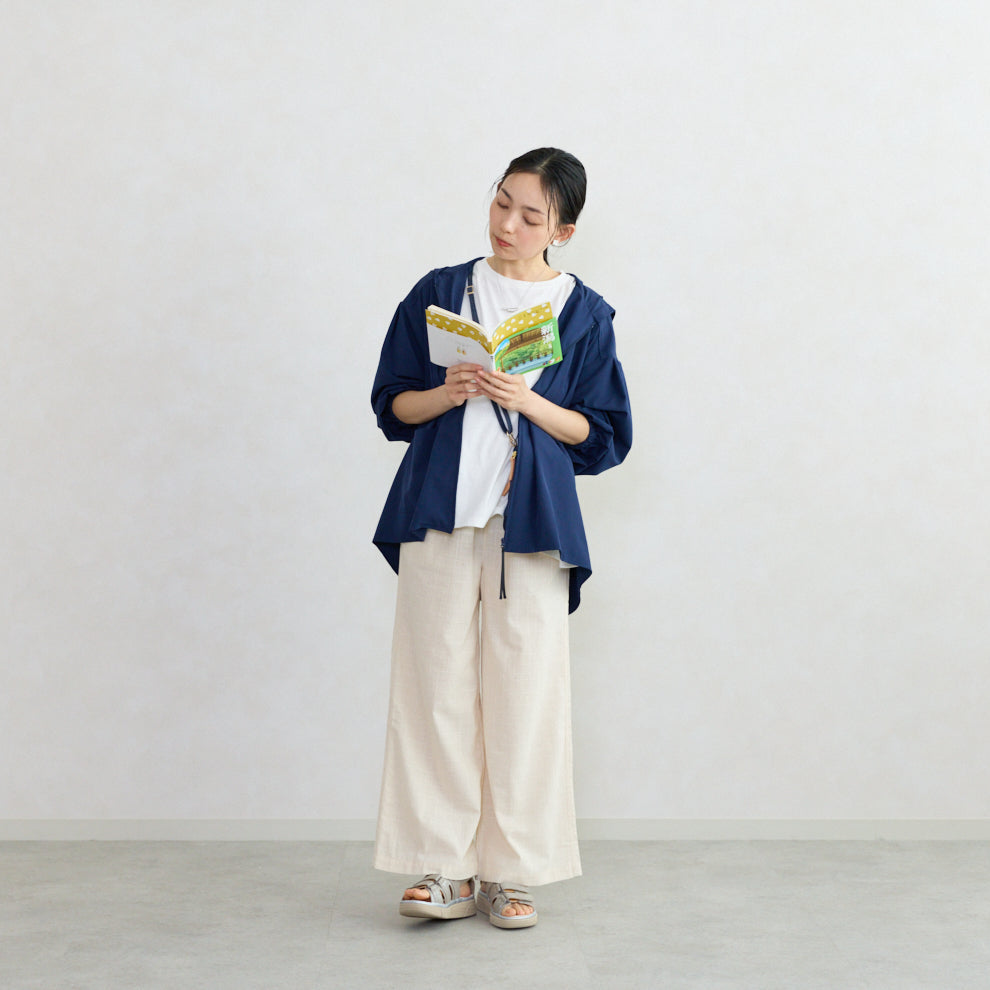 おでかけ時や通勤時には、「ちょっと羽織りたい」と思う瞬間が意外と多いもの。小さく折りたたんでバッグに入れておけば、日差しが気になるときや、冷房で肌寒いときにもさっと取り出して羽織れます。軽くてかさばらないので、旅行バッグに1着入っていれば安心です。