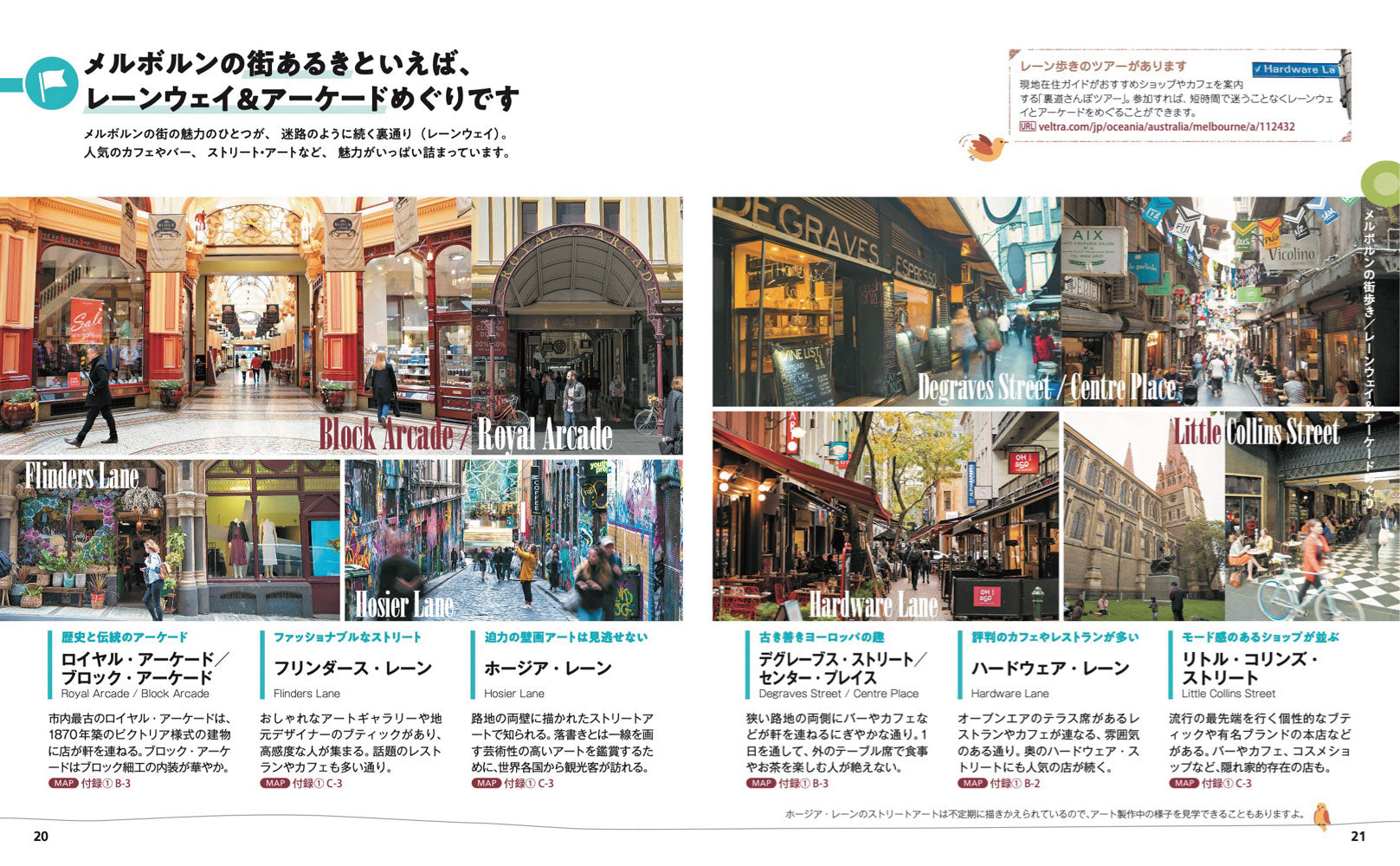 いま気になるテーマから王道の定番スポットまで、メルボルンの魅力をぎゅっと詰め込んだ一冊。オーストラリアの中でも、とくにイギリス情緒が残るメルボルン。トラムが走る街並みや、迷路のような裏路地やアーケードさんぽ、美しいガーデン、世界遺産の庭園など見どころたっぷりご紹介。旅の目的にしたいメルボルンのカフェめぐりや、美食の街のレストランやバー、異文化ストリートの各国の料理などおいしい情報も満載です。少し郊外に出ると、ワイナリーや国立公園、世界一小さいペンギンに会えるフィリップ島や、ドルフィンスイムが楽しめるモーニントン半島など、ユニークな自然体験もありますよ。オーガニックコスメやローカルアーティストの雑貨など、おみやげ情報も見逃せません。