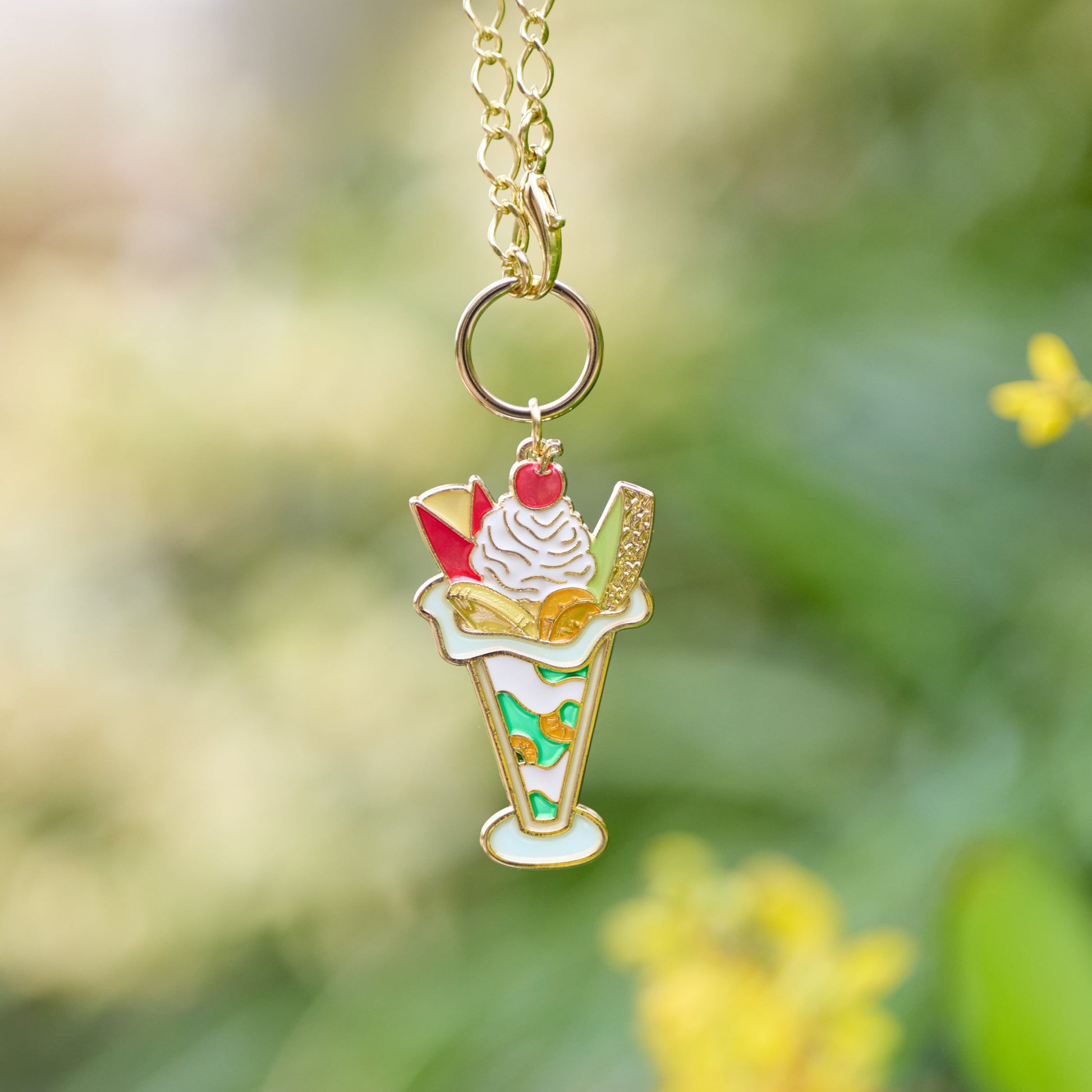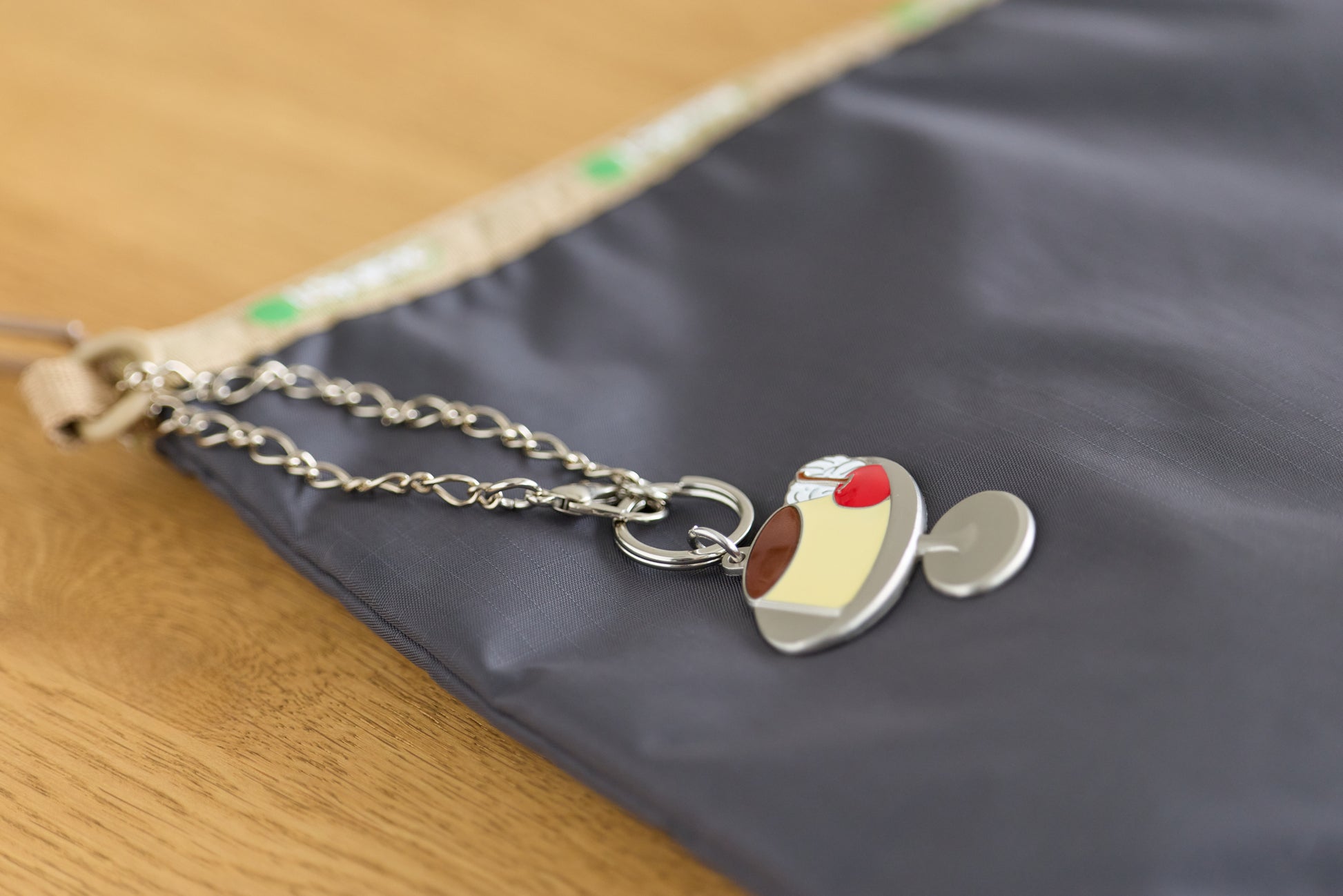 まず1つ目のキーホルダーは、東京・池袋の老舗洋菓子店「タカセ池袋本店」でいただける、昔ながらのフルーツパフェがモチーフ。