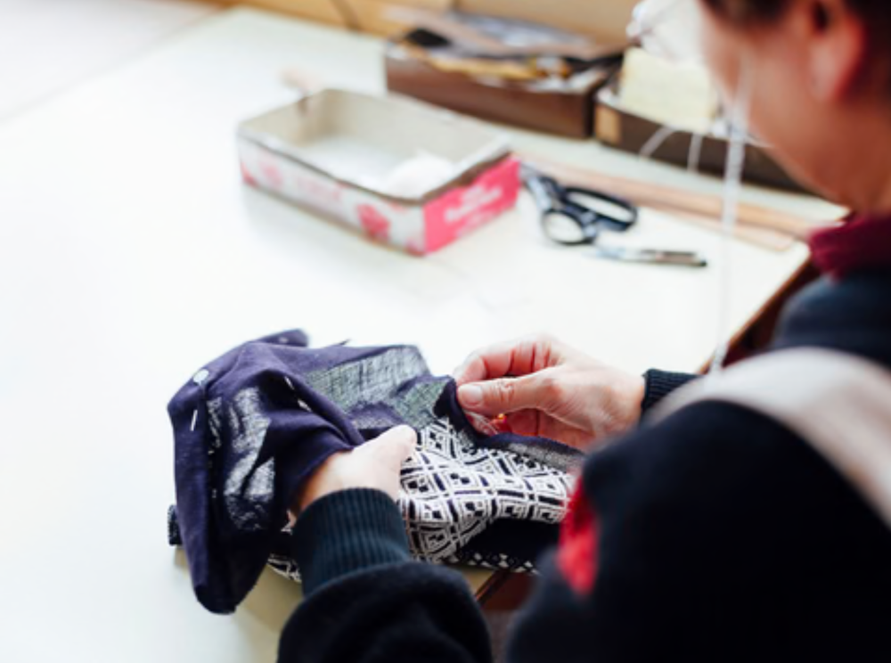 そんな「津軽こぎん刺し」を地域のブランドとして守り、全国・世界へ発信していくことを目標に開設されたのが「弘前こぎん研究所」です。1942年の開設から約80年もの間、こぎん刺しの伝統を守りながらものづくりを行い、さらに赤や紫といった色を取り入れながら、現代の生活に寄り添った製品も展開しています。