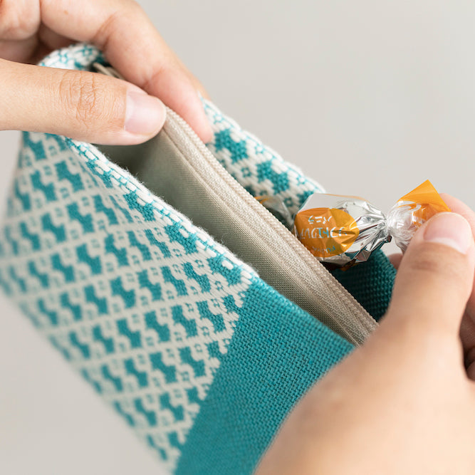 ちなみに「津軽こぎん刺し」は、複雑な模様であればあるほど、裏面の糸がモコモコと絡まるため、防寒性と補強力が増すそう。このポーチも、もちろんしっかりとしているので、普段遣いから旅グッズとしても活躍してくれそう。何より、1針1針丁寧に刺されたディテールが素敵で、鮮やかなカラーがバッグの中で見つけやすいのも嬉しいです。