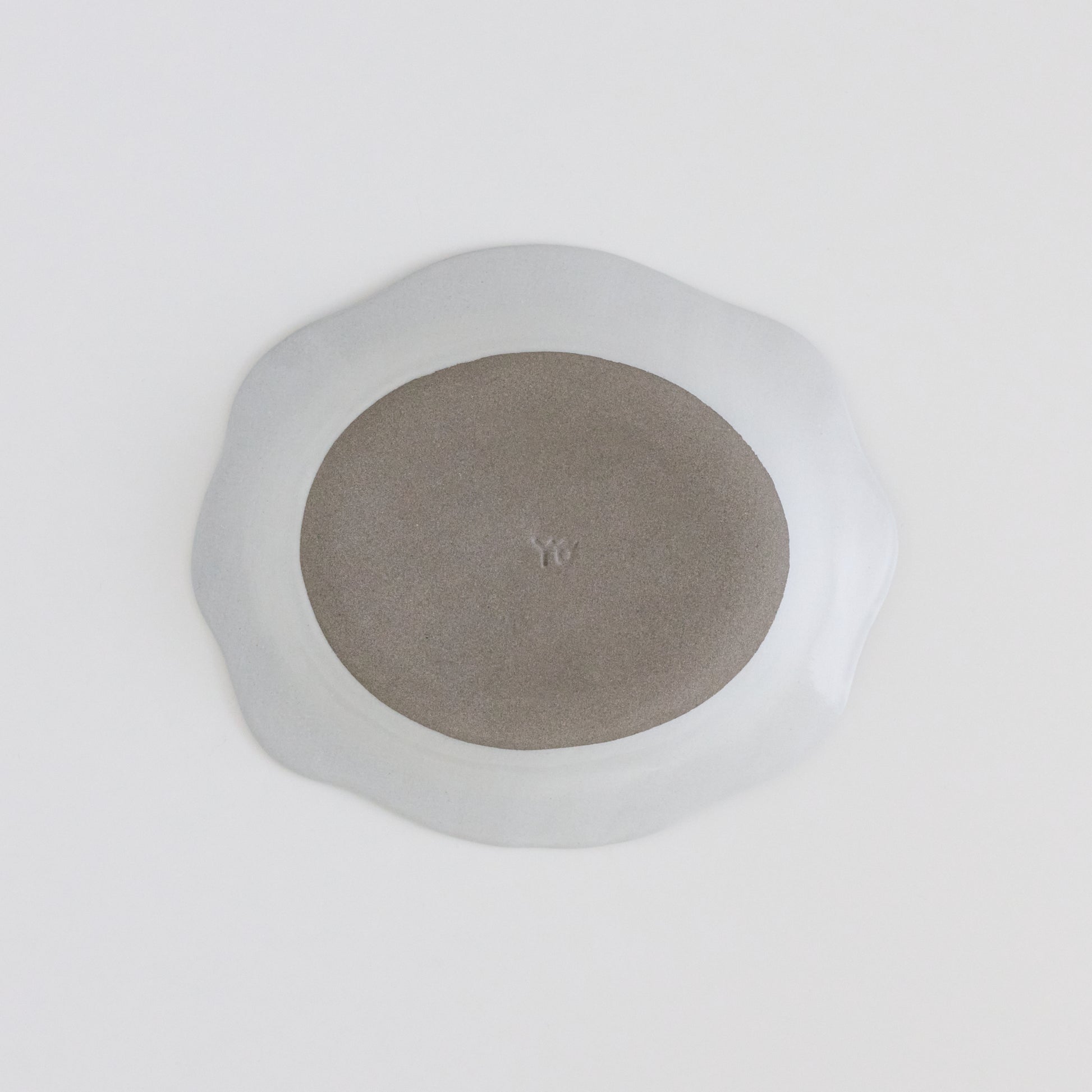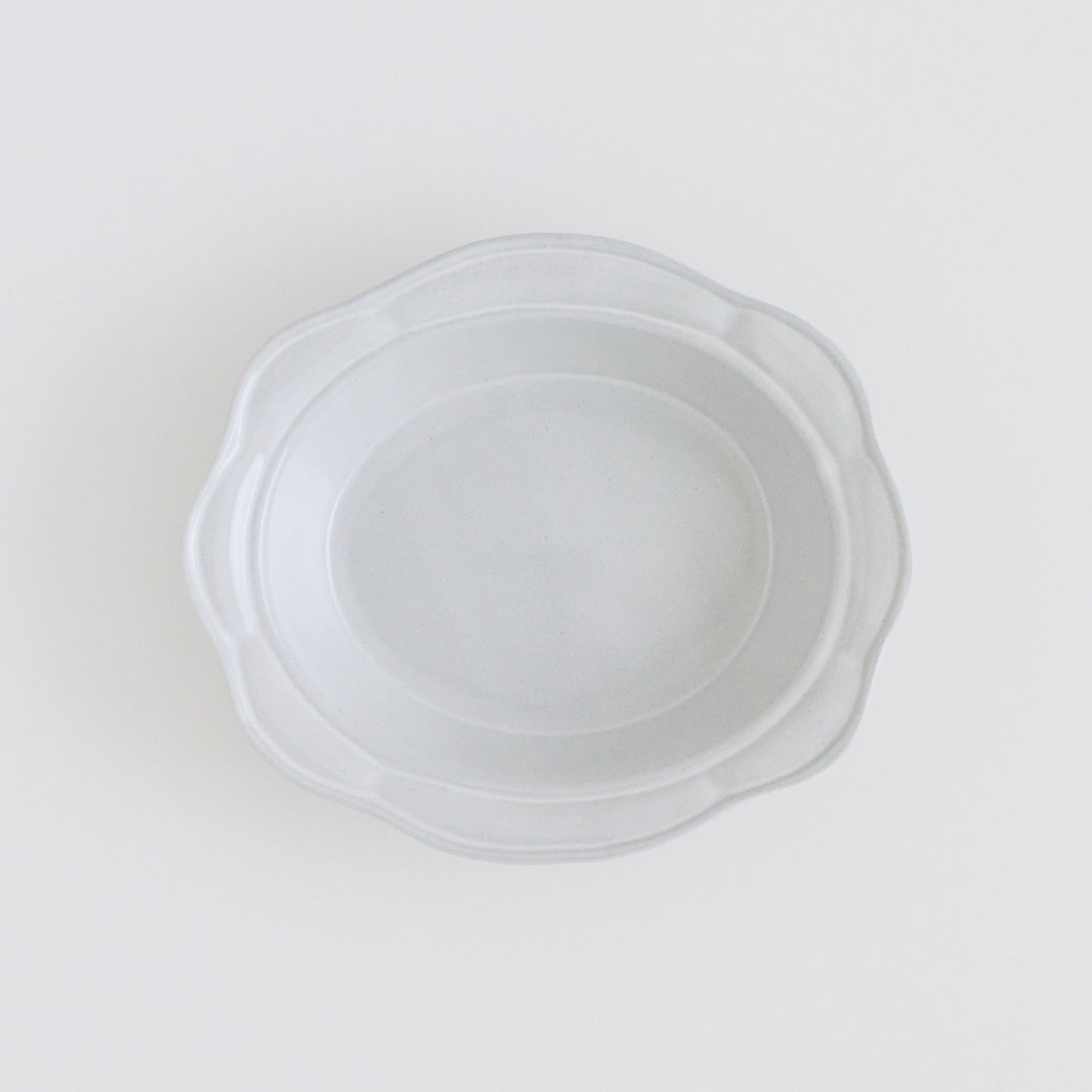 ホワイトグレー 西洋花楕円皿【よしざわ窯】