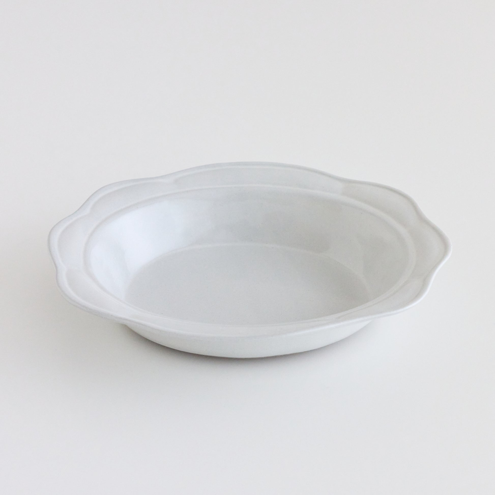 器ファンの間ではいつか訪れたい町として名前があがる、栃木県、益子。その地で、日々の食卓を楽しくする器づくりをコンセプトに、手仕事で器を生み出す「よしざわ窯」から、ヨーロッパの蚤の市で見つけたアンティークのような、物語を感じる西洋花楕円皿が届きました。どこか儚げで美しいホワイトグレーの色合いと、縁を彩る可憐な花のレリーフが、食卓を上品で優しい雰囲気にしてくれます。一枚お迎えするだけで、普段の食事が少しだけ特別な時間に変わり、日々の暮らしにささやかな幸せを添えてくれます。