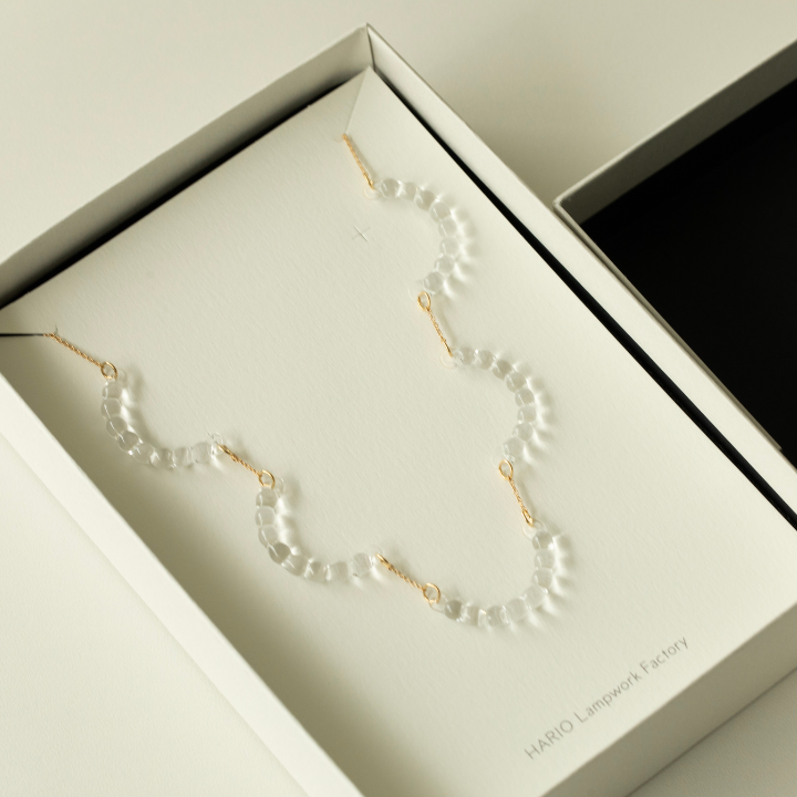 手掛けたのは、1921年創業の耐熱ガラスメーカー・HARIOが手がけるアクセサリーブランド、HARIO Lampwork Factory。職人の手仕事技術を継承するために生まれたブランドで、東京・日本橋の工房でひとつずつ手作りされています。