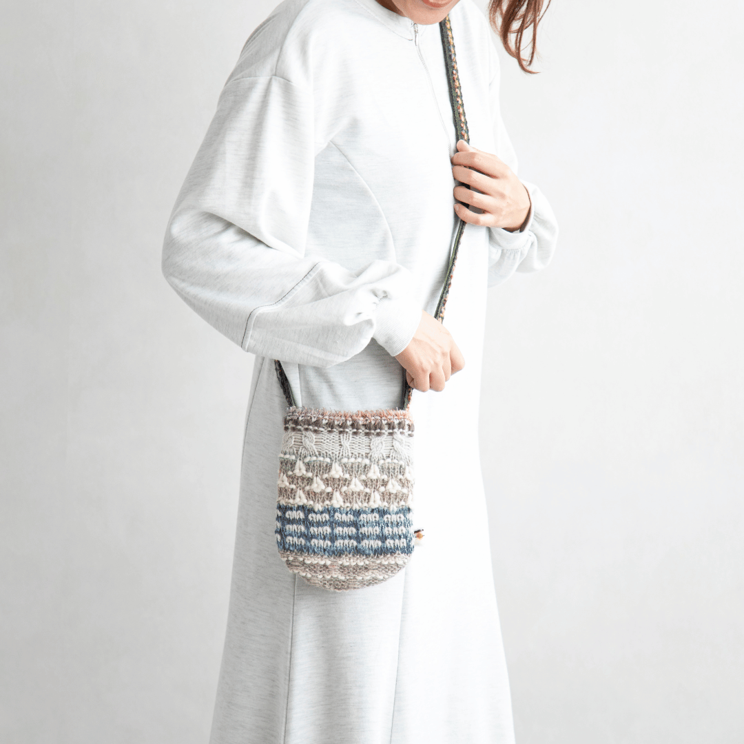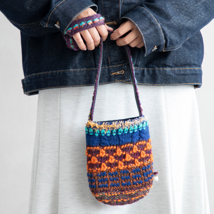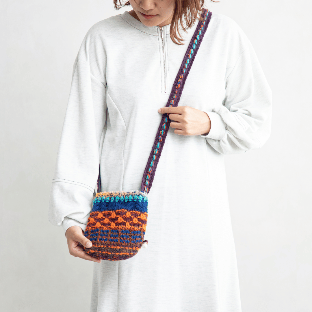 山形県・寒河江市で、90年以上の歴史を紡ぐ老舗ニットメーカー「佐藤繊維」。 そのファクトリーブランドで、ノスタルジックな世界観が魅力の「M.&KYOKO」から、旅のお供にぴったりなファンシーMIXミニショルダーバッグが届きました。 シーズンごとに紡がれる物語を表現した独特なデザインは、どこか懐かしく、手仕事の温もりを感じる佇まい。様々な種類の糸がまるで旅の記憶のように織り交ざり、持つだけで心躍ります。ころんと愛らしいフォルムが、旅先での装いに彩りを添えてくれます。