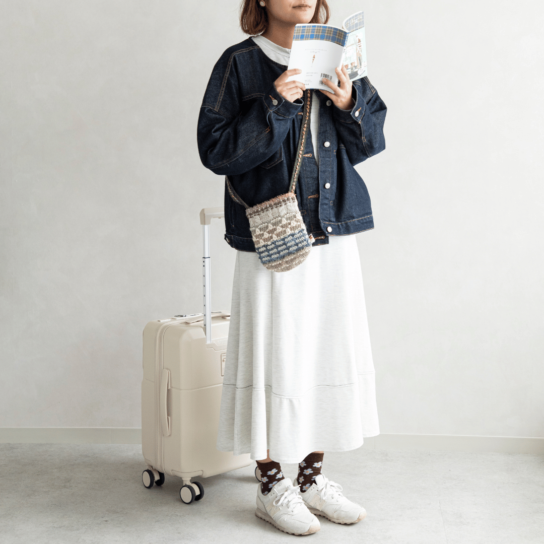 ショルダー紐はくるっと結んで長さを調整して、アウターや気分に合わせて斜めがけにしたり、短めにして肩にかけたりと、自分らしいバランスを楽しんでくださいね。