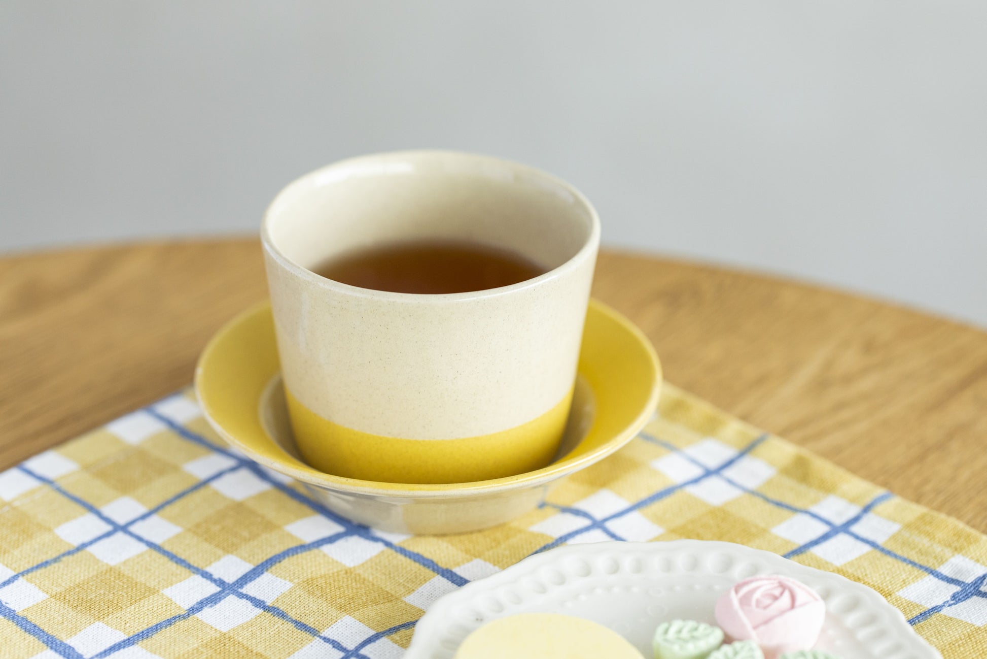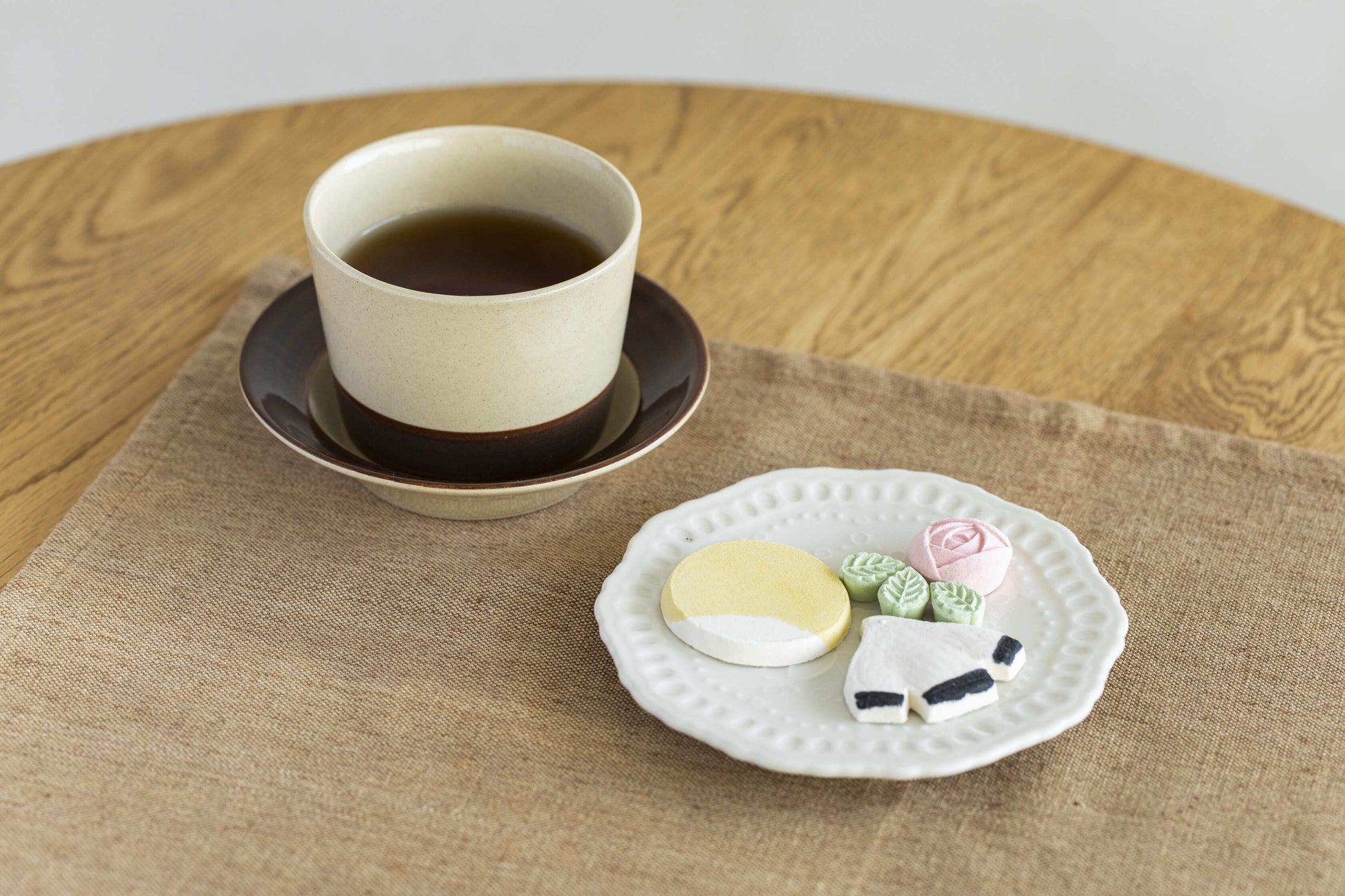 小皿をソーサーに見立てて、“ひとそろい”にするのも素敵な使い方。 セットでよそゆき顔にしても、単品でカジュアルに使っても。 形式にとらわれないその自由さが、日々の暮らしに心地よく馴染みます。